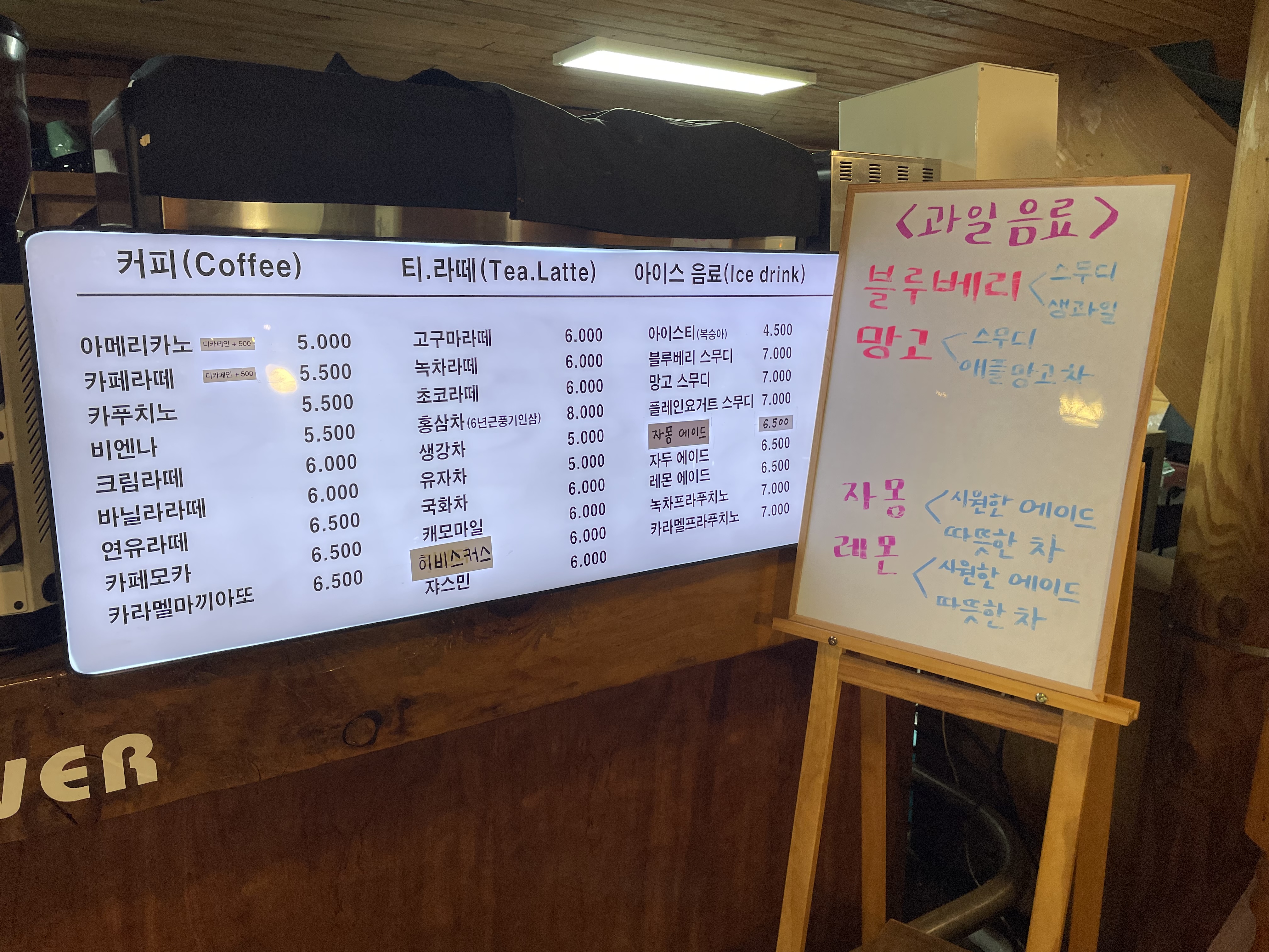 시원하게 트인 창으로 보이는 자연 풍경은 커피 한 잔의 여유를 더해주더라고요.