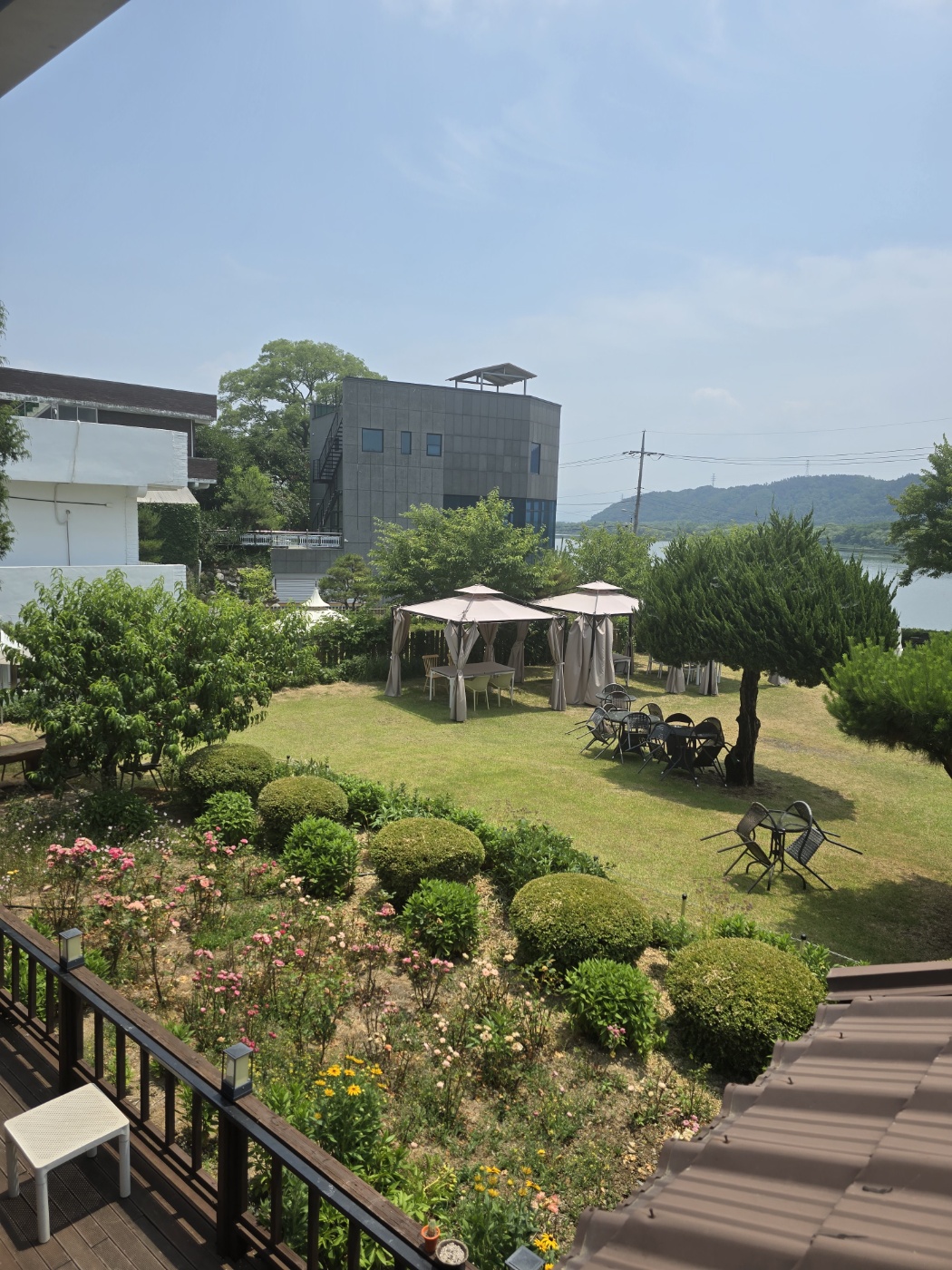 야외에서 커피 한 잔 즐기기에 정말 좋아요. 탁 트인 느낌이라 개방감도 훌륭합니다.