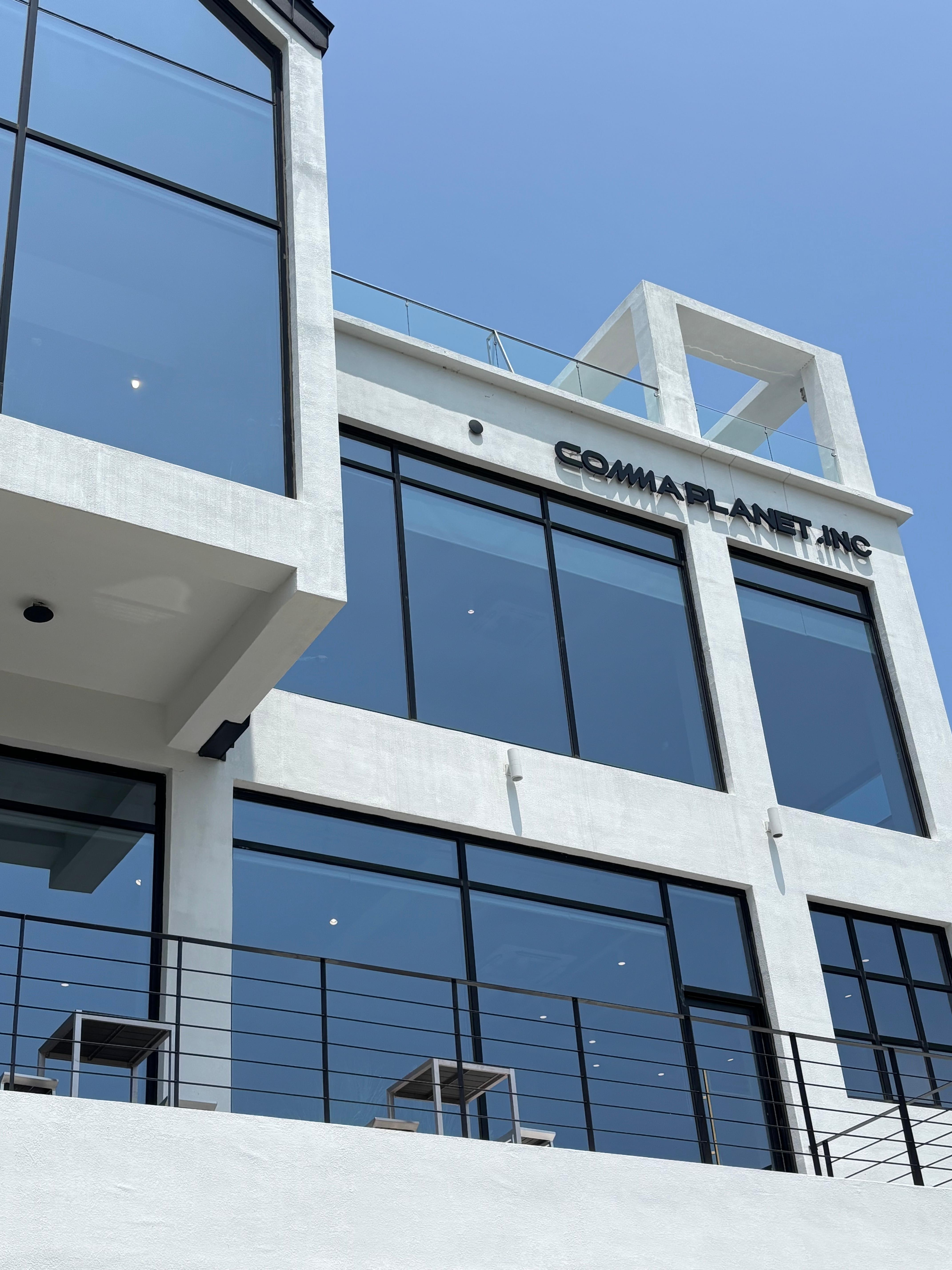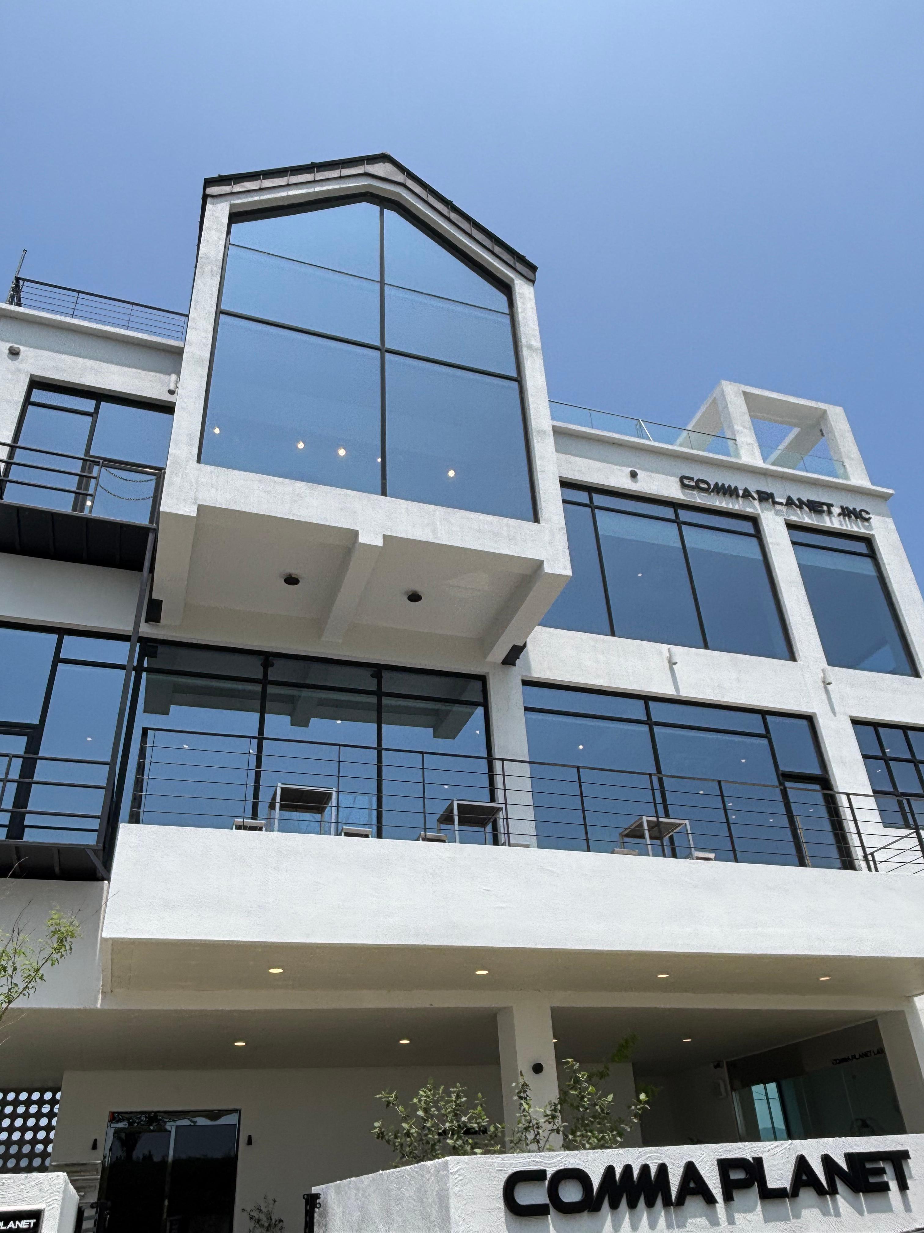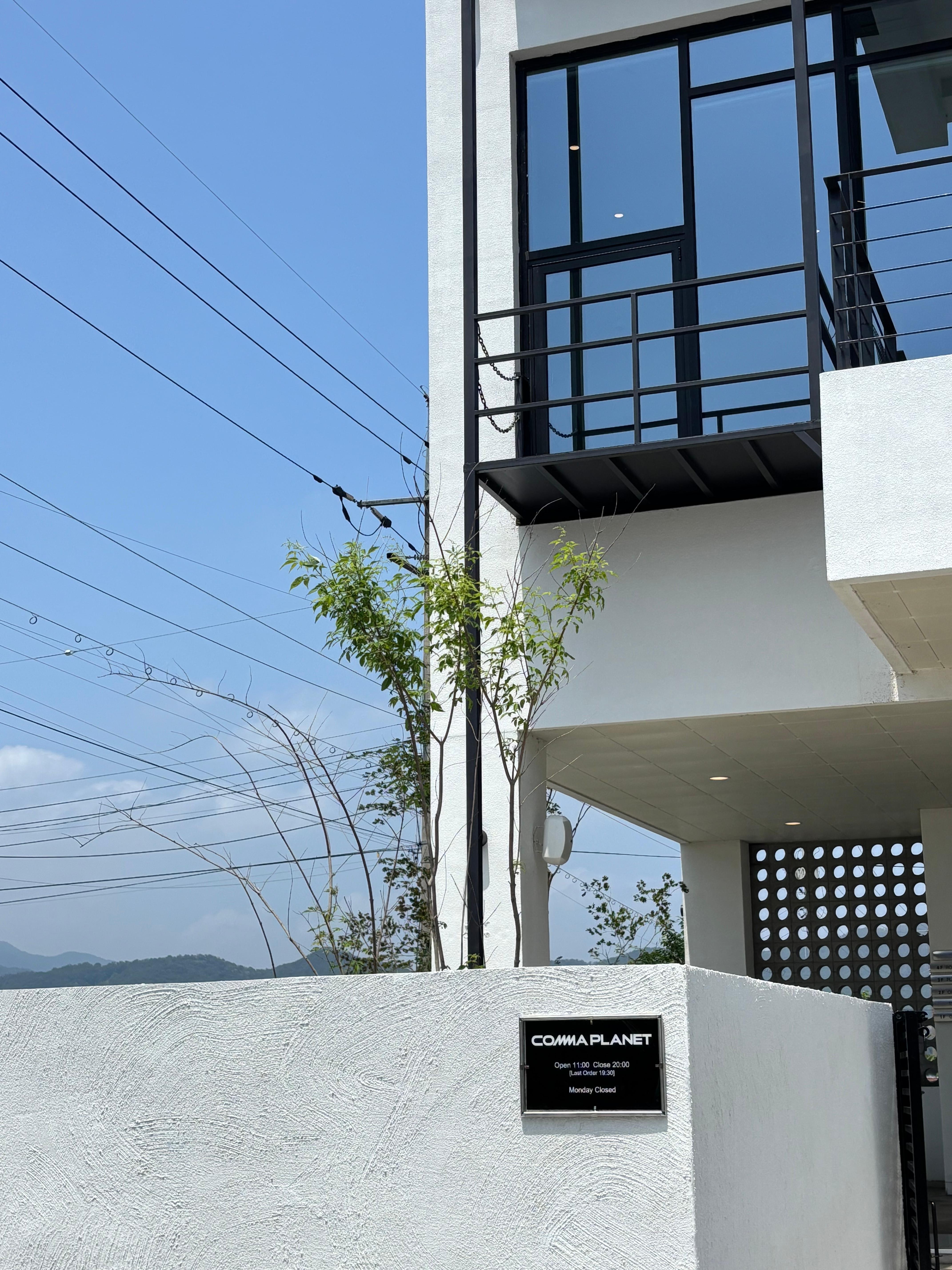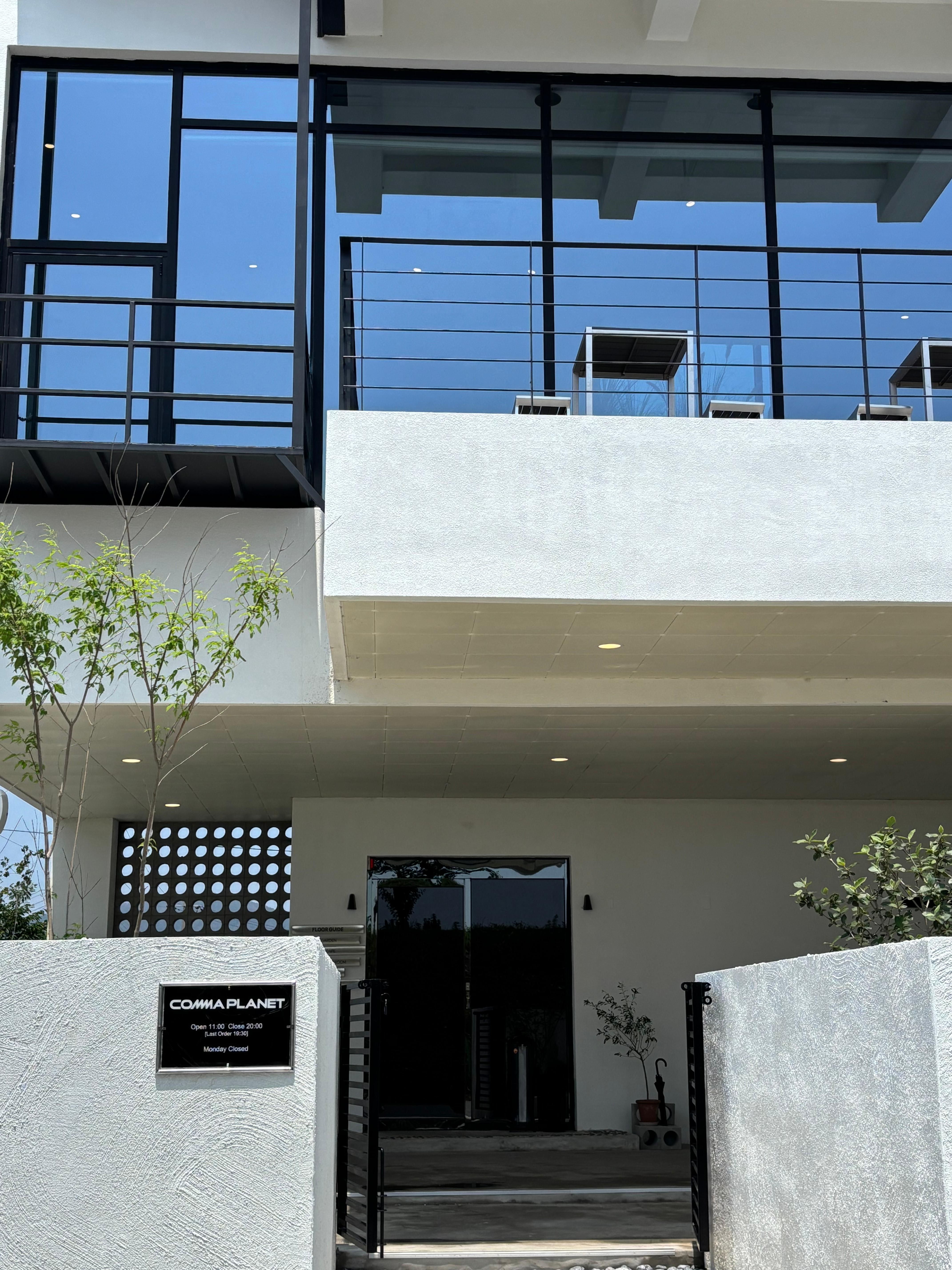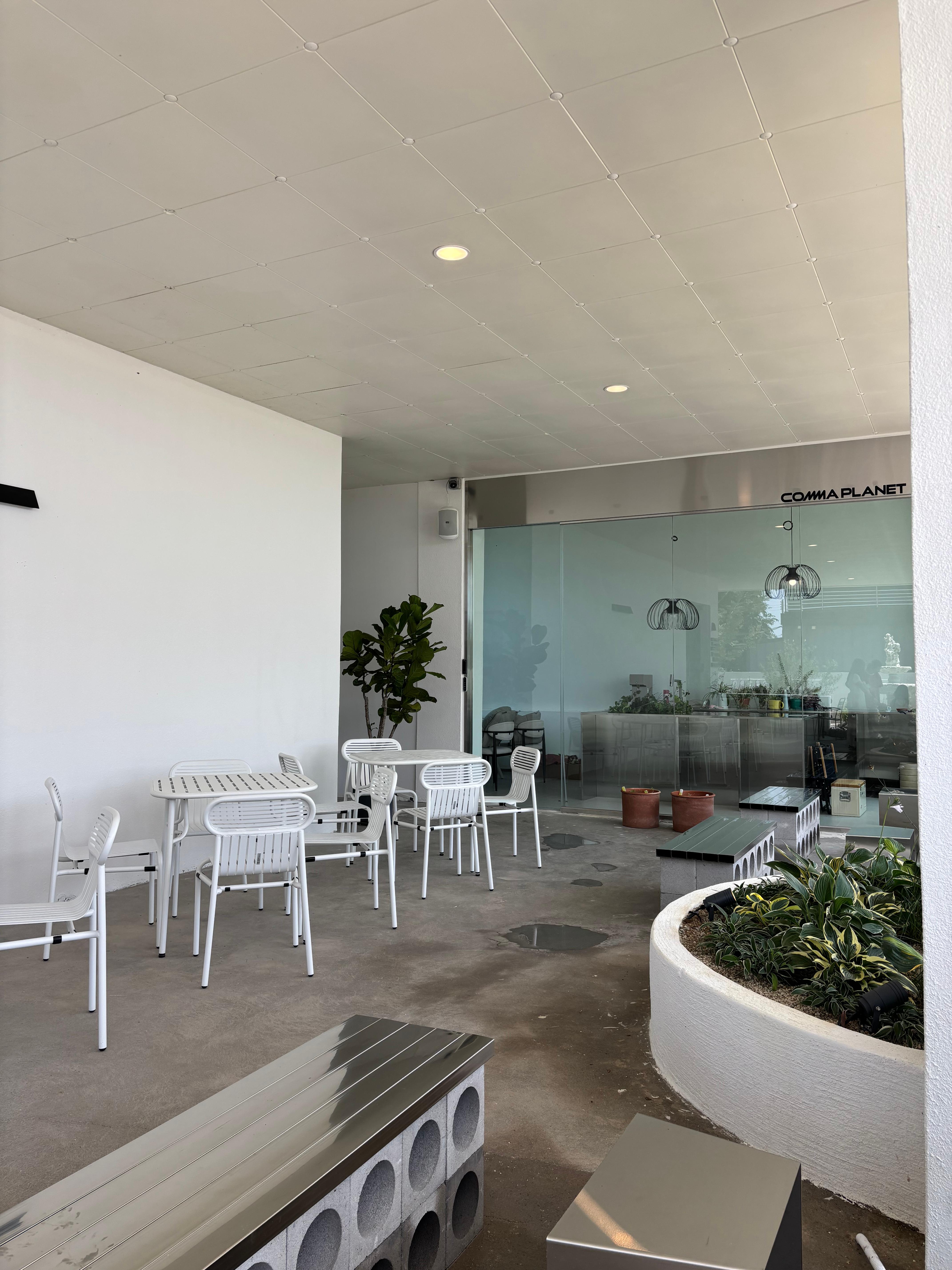 • "콤마플래닛 외부 전경 – 식물과 조경이 어우러진 감성 공간"