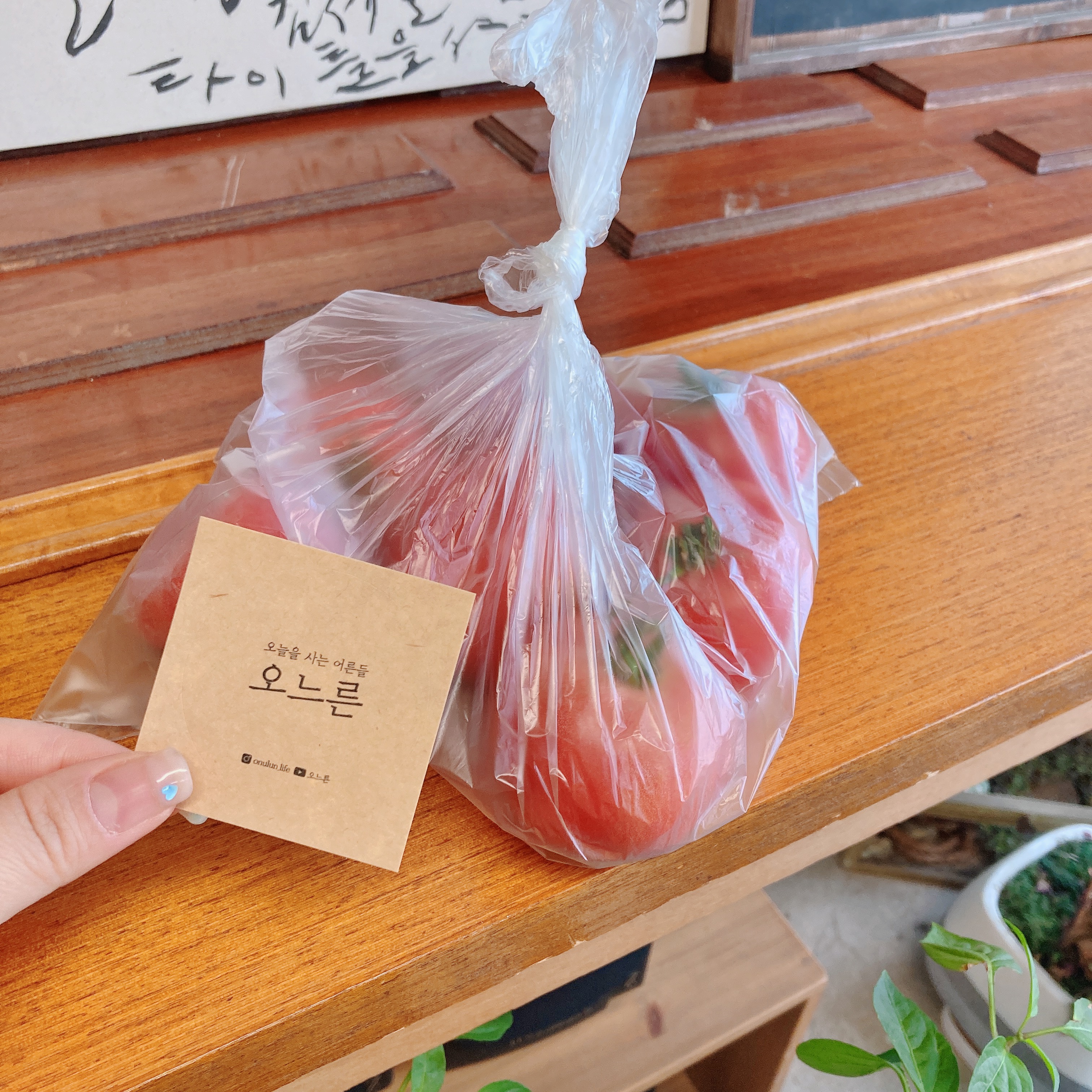 그러자 관계자분께선 싱그러운 토마토 한 봉지를 건네주셨답니다.