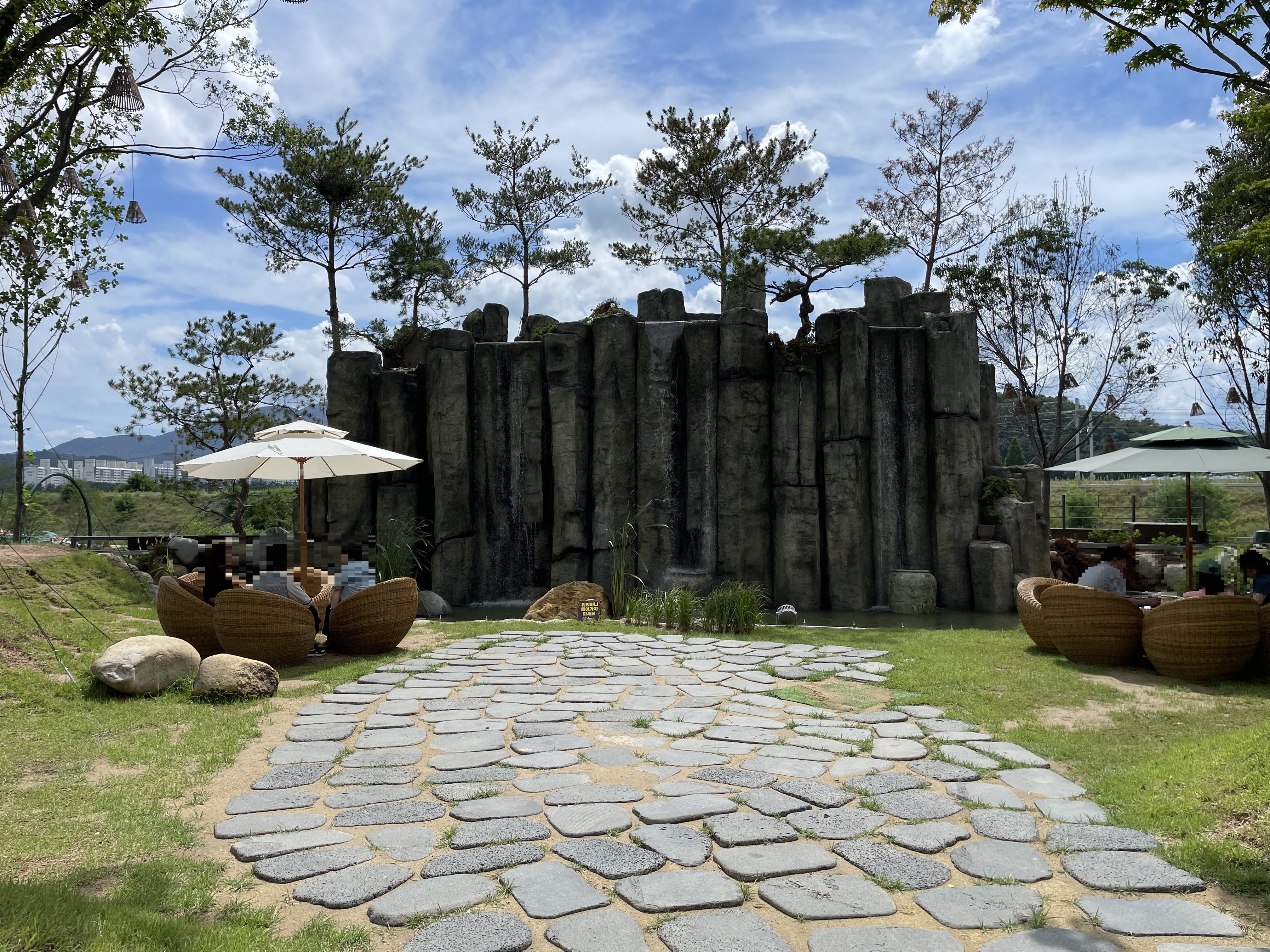 🌿 외부 풍경 – 인공폭포까지 있는 감성 외관