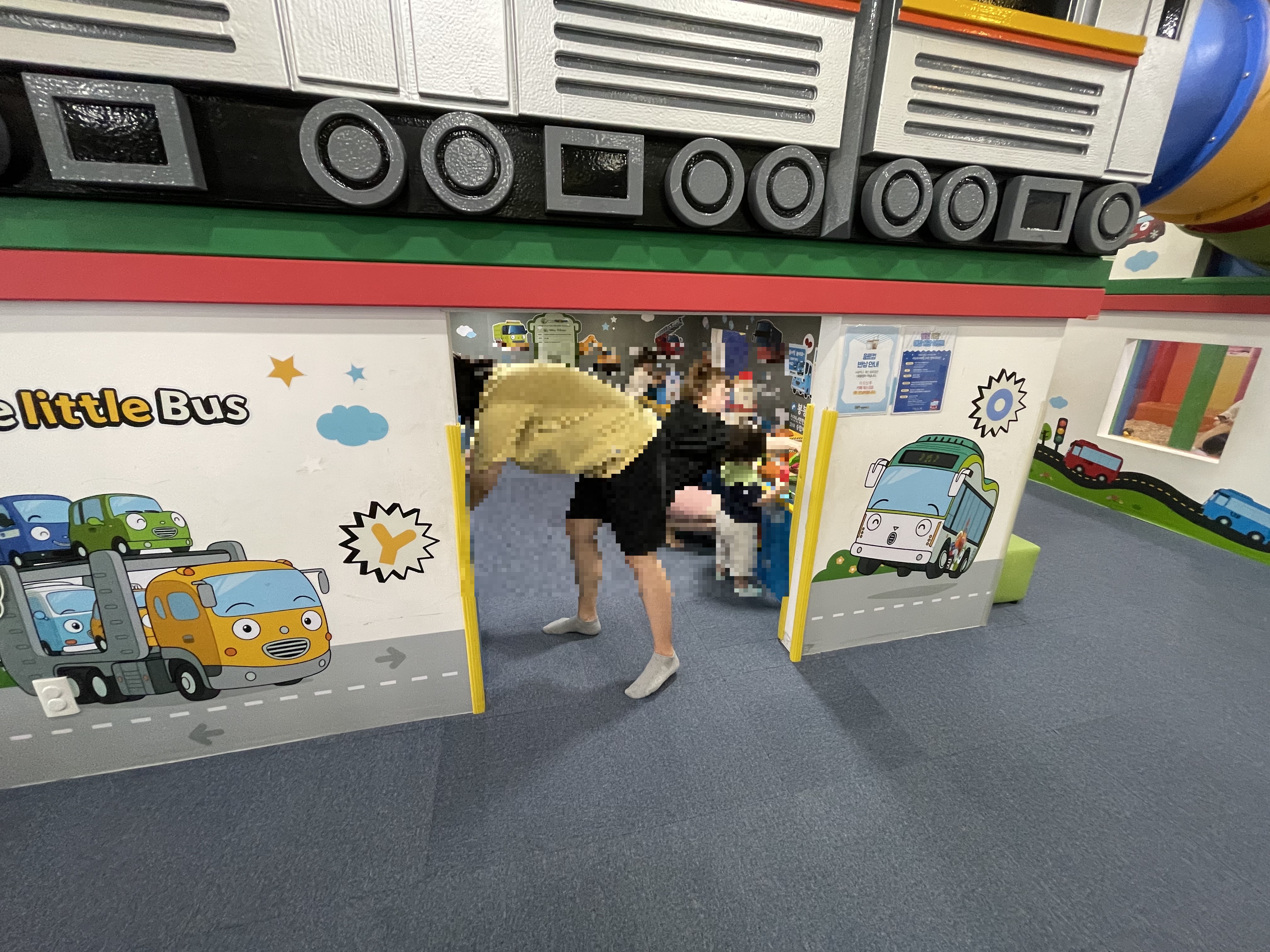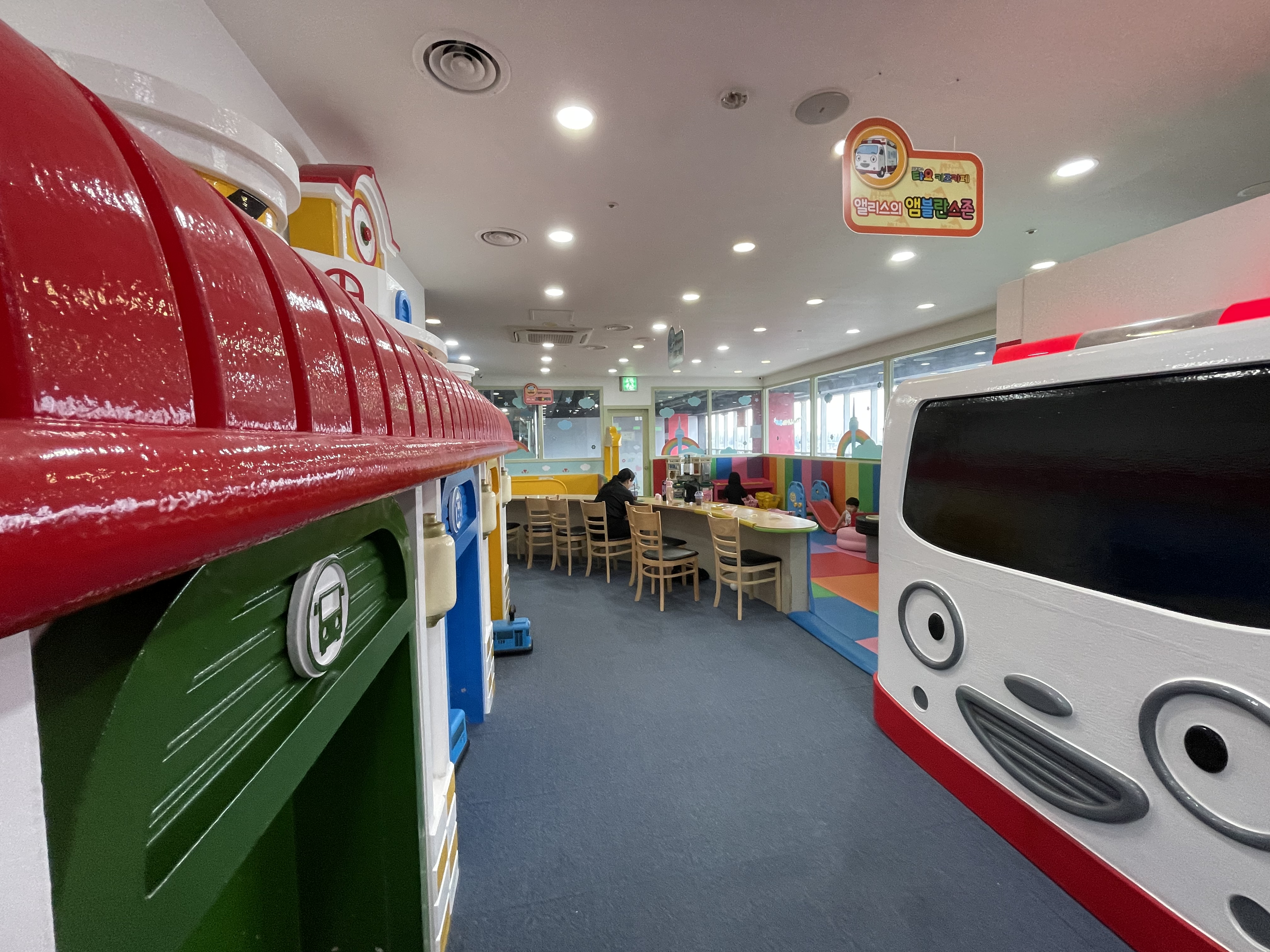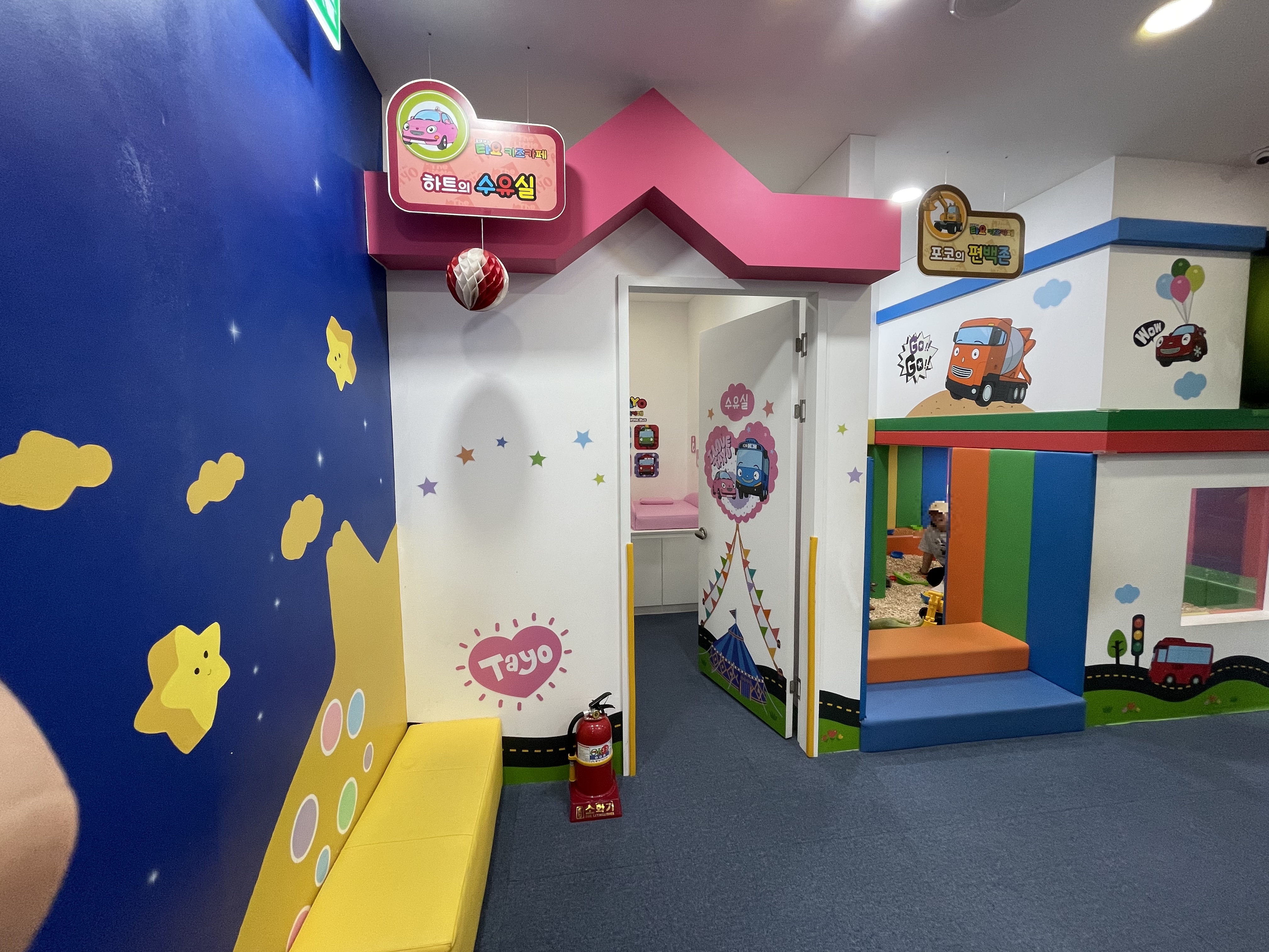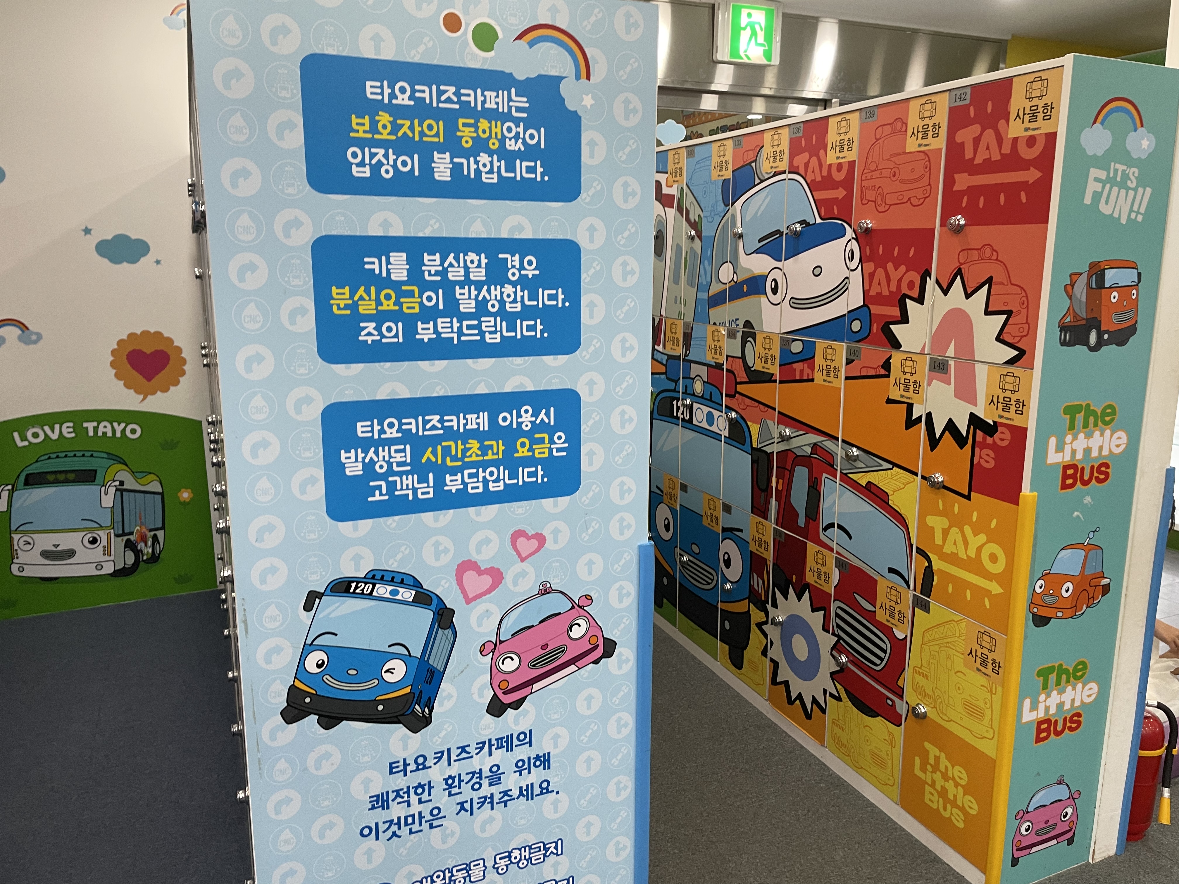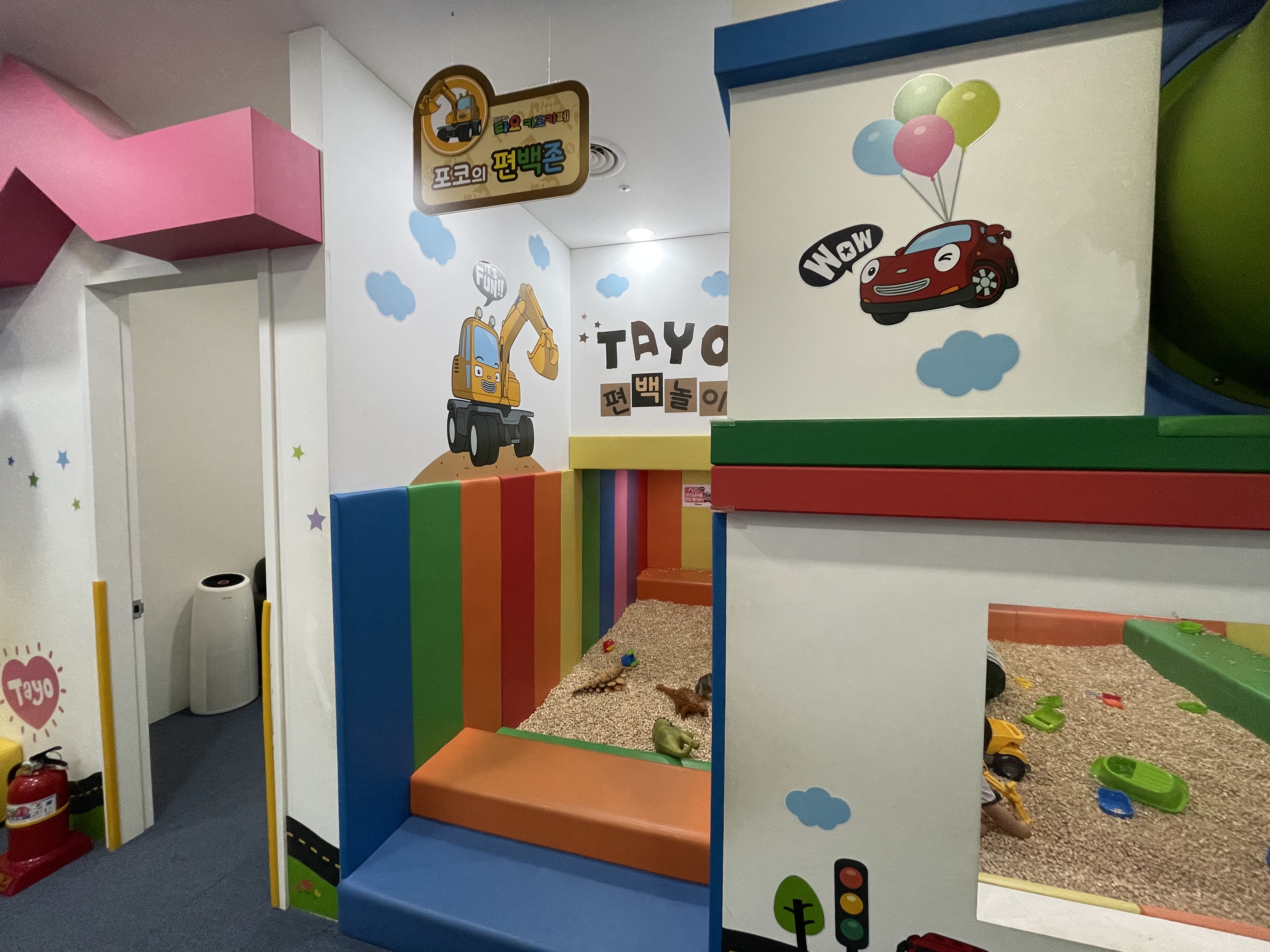 아이가 너무 좋아하는 타요 캐릭터가 가득한 공간이라 그런지, 들어가자마자 신난 모습이 인상적이었어요.