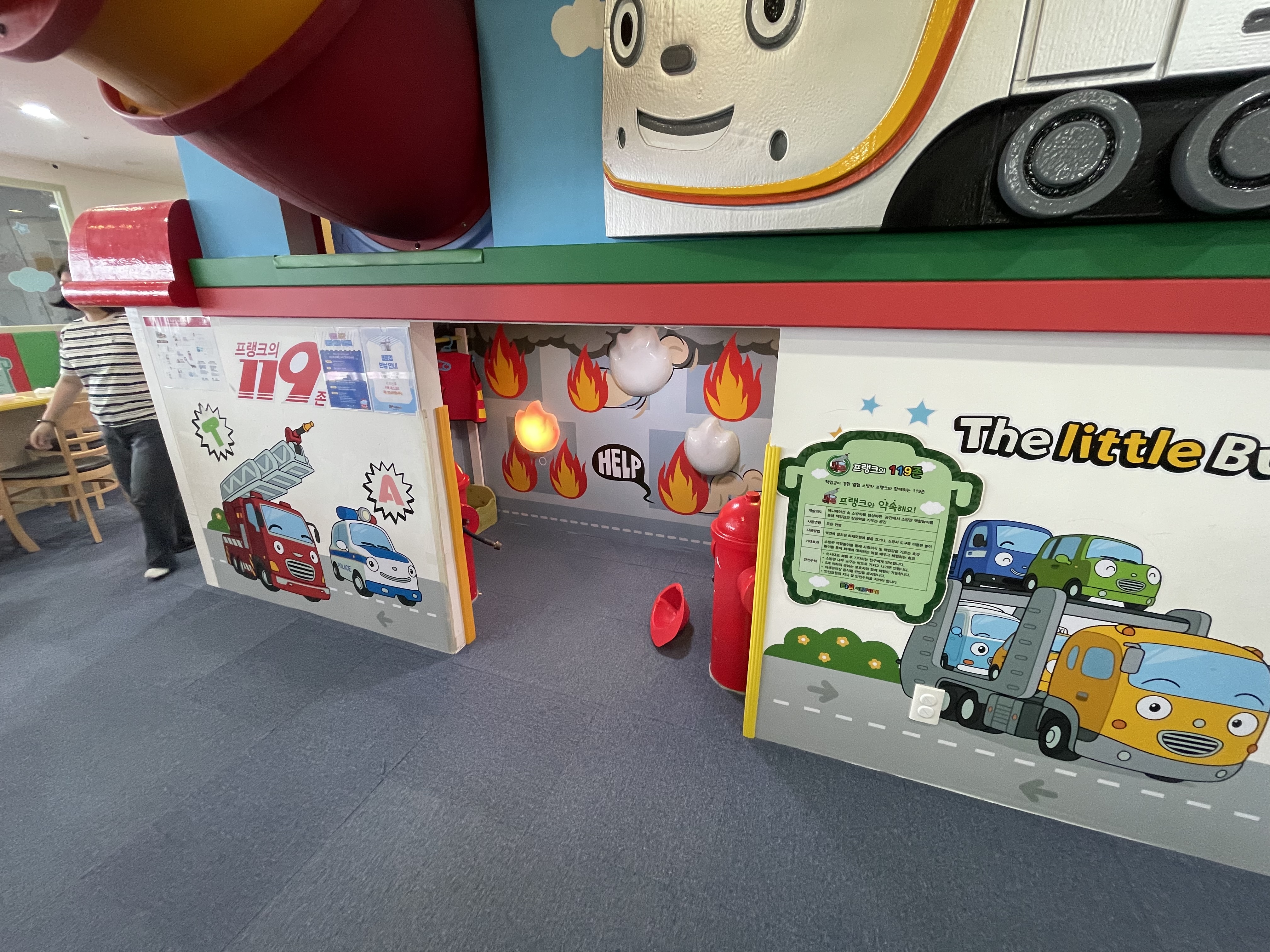소방차와 앰뷸런스 테마로 꾸며진 공간이라 아이들이 직접 소방관이 된 듯한 기분을 느낄 수 있었어요.