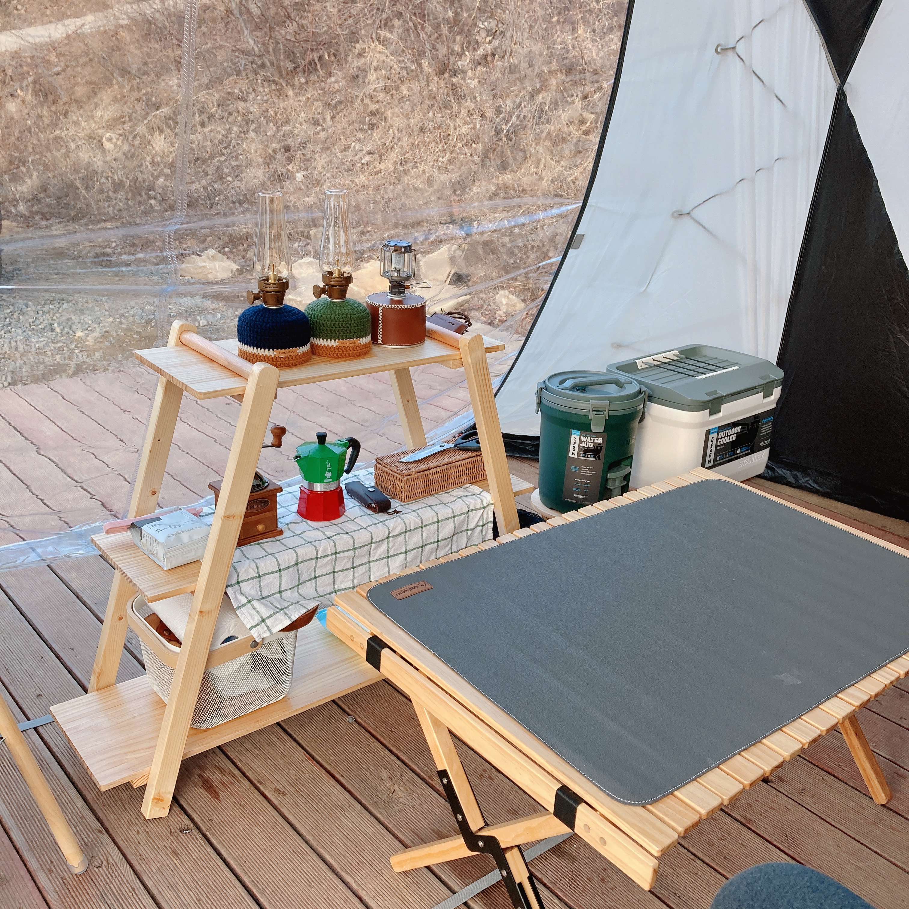 텐트 내부는 이렇게 따뜻하게 구성했어요.