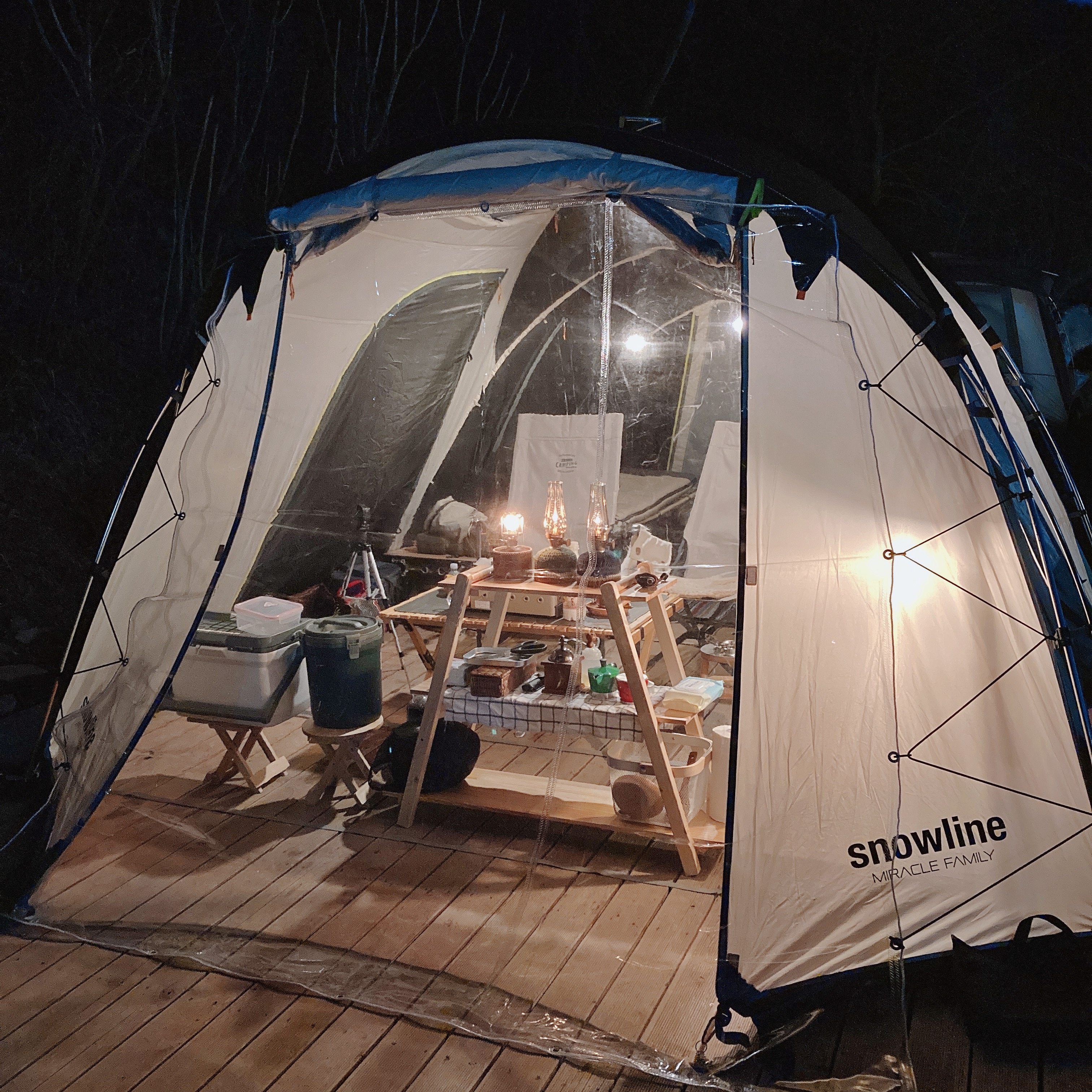 해가 지고 나면 텐트 안의 조명이 은은하게 켜지면서,