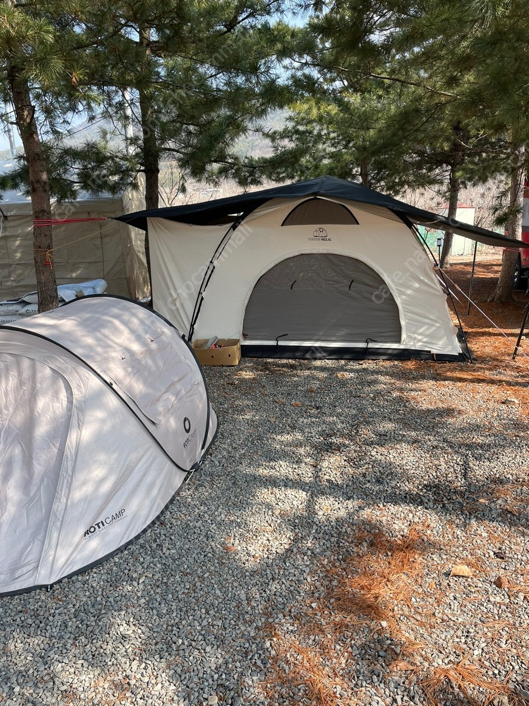 솔직히 설치할 때 '이거 좀 복잡하지 않을까?' 했는데, 두 사람이 하면 15분도 안 걸리더라구요. 아이보리 색상이라 그런지 설치하고 나면 주변 풍경과 너무 잘 어울려요. 게다가 전면부 확장하면 거의 거실 수준의 공간이 나오니까, 가족 단위로 캠핑 가서 애들이 뛰어놀기도 딱 좋습니다.