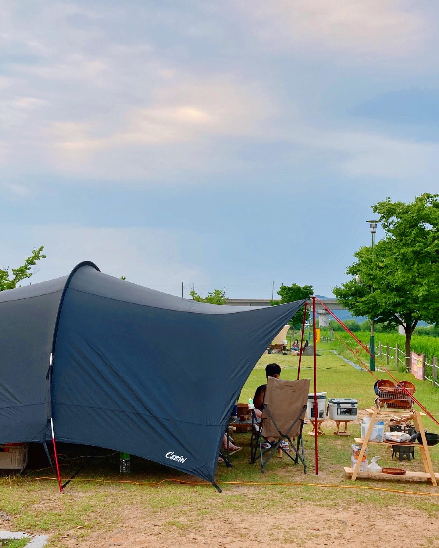 낮에는 그늘막으로서의 역할을 충분히 해주면서도 개방감이 좋아 답답하지 않았습니다. 특히 환기가 잘 되어 텐트 내부가 쾌적했고, 바람이 잘 통했습니다.