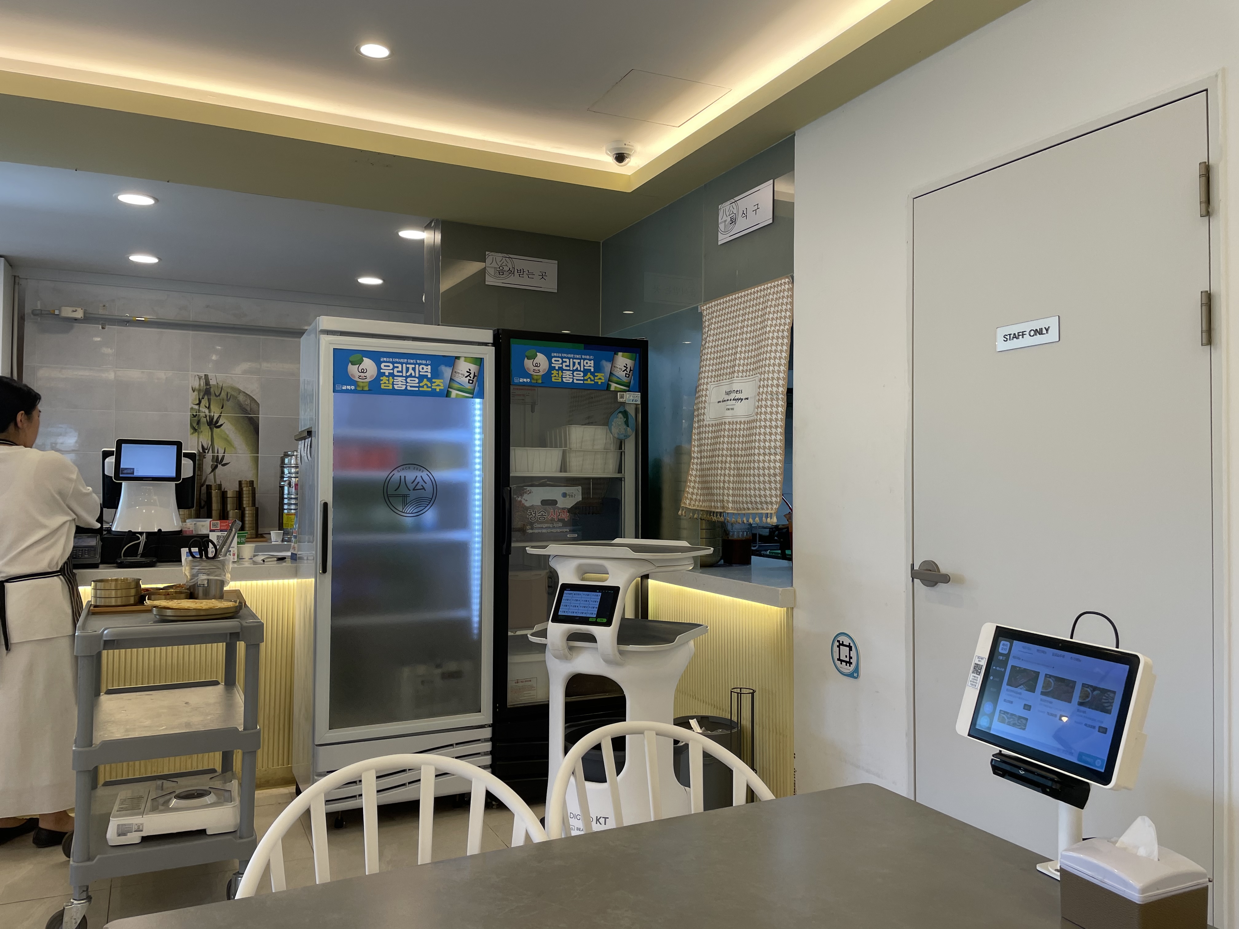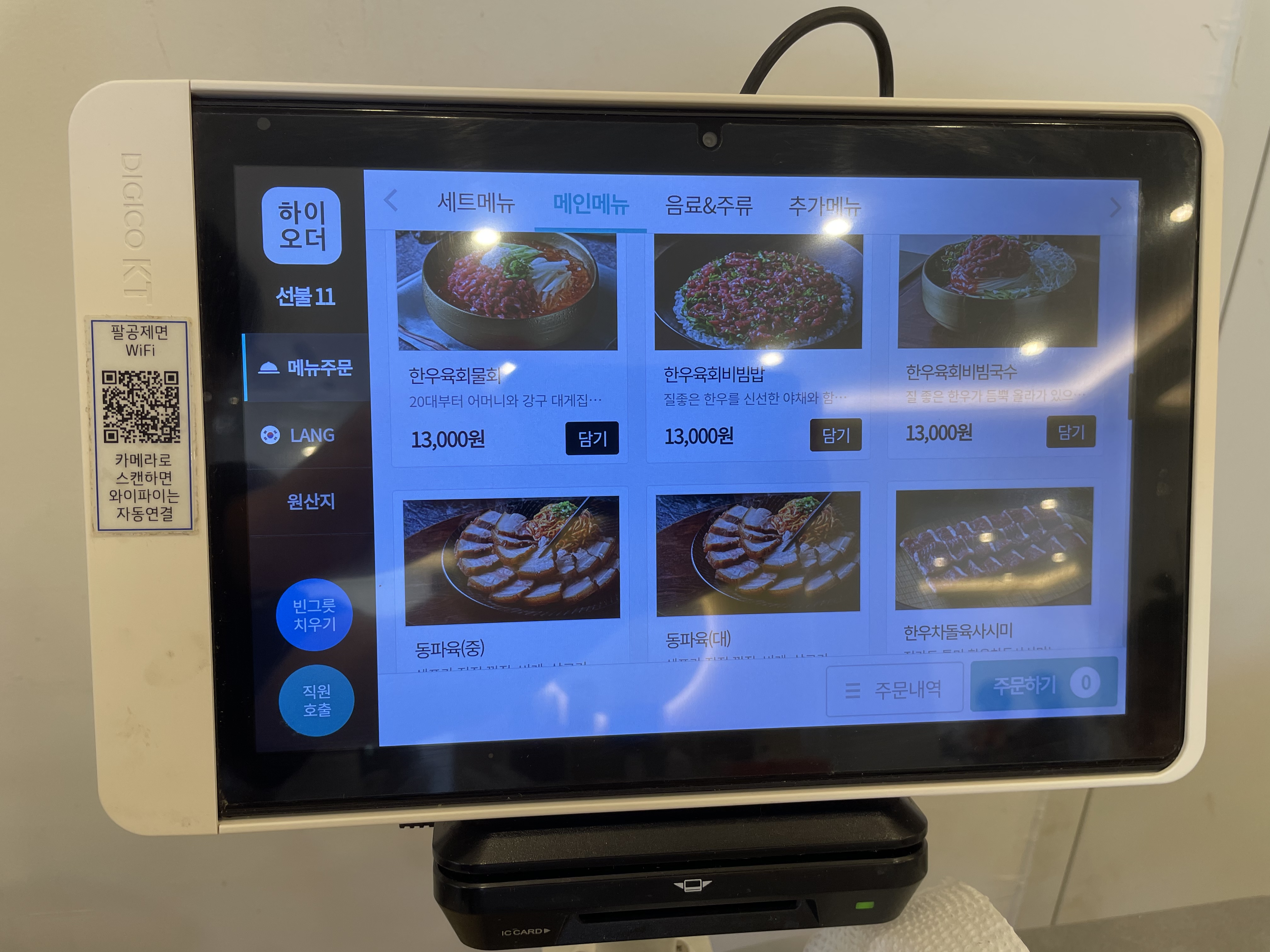 테이블 키오스크와 휴대폰 충전기 등 작은 배려도 잘 갖춰져 있었어요.