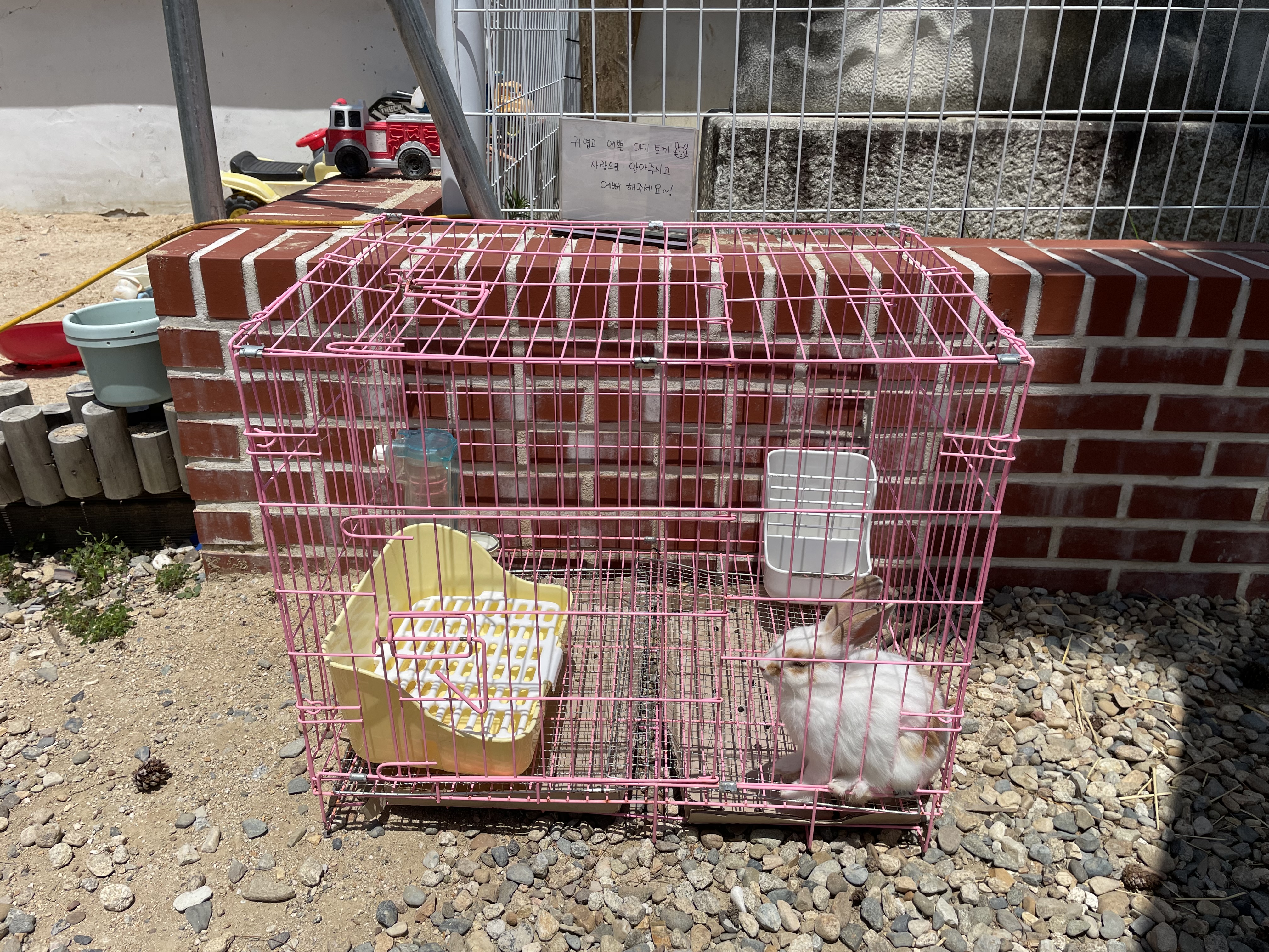 입구에는 귀여운 토끼가 있고, 실내엔 앵무새, 금붕어,