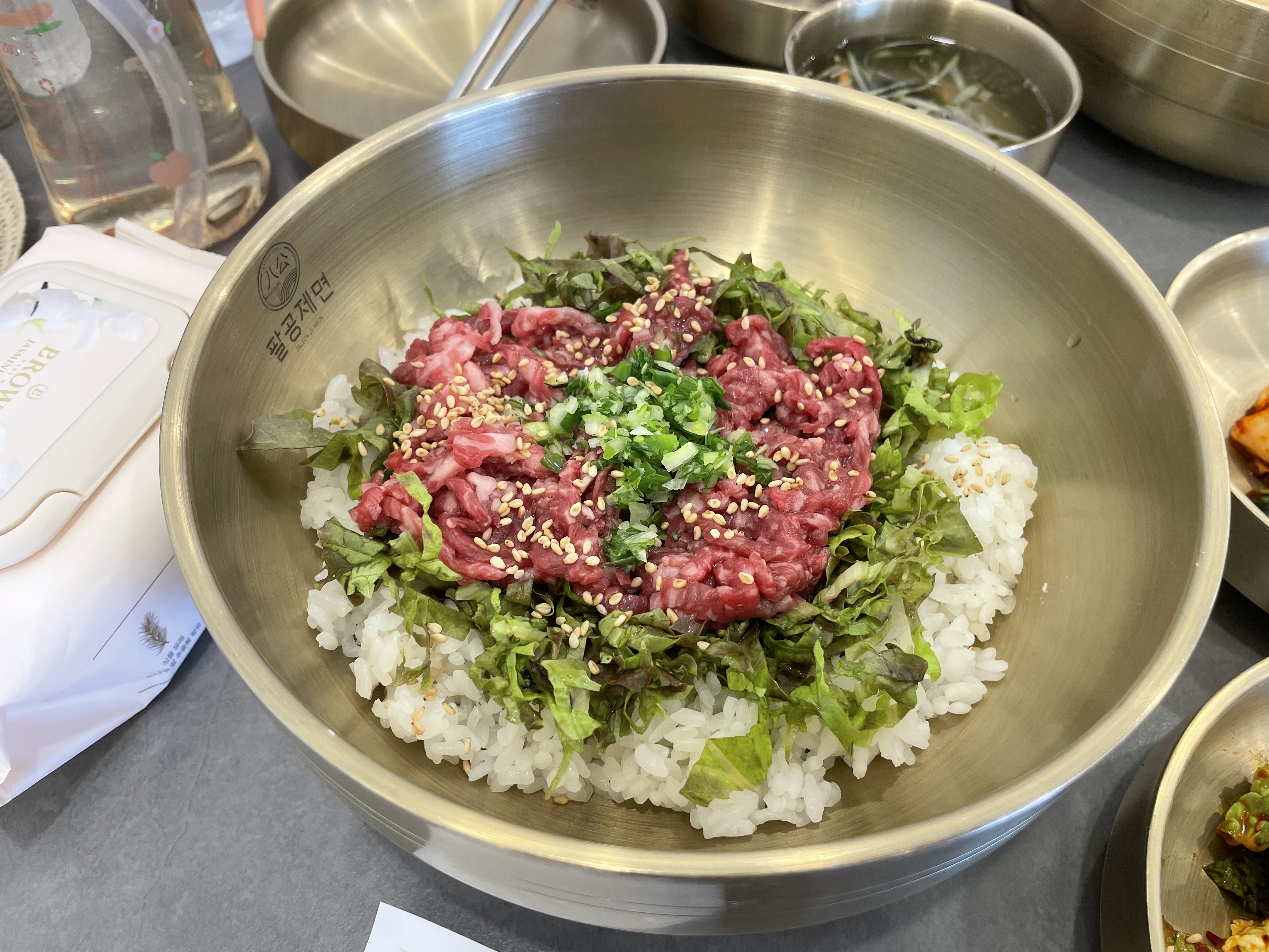 육회 신선하고, 밥 양도 넉넉하고, 깔끔한 양념이 딱!