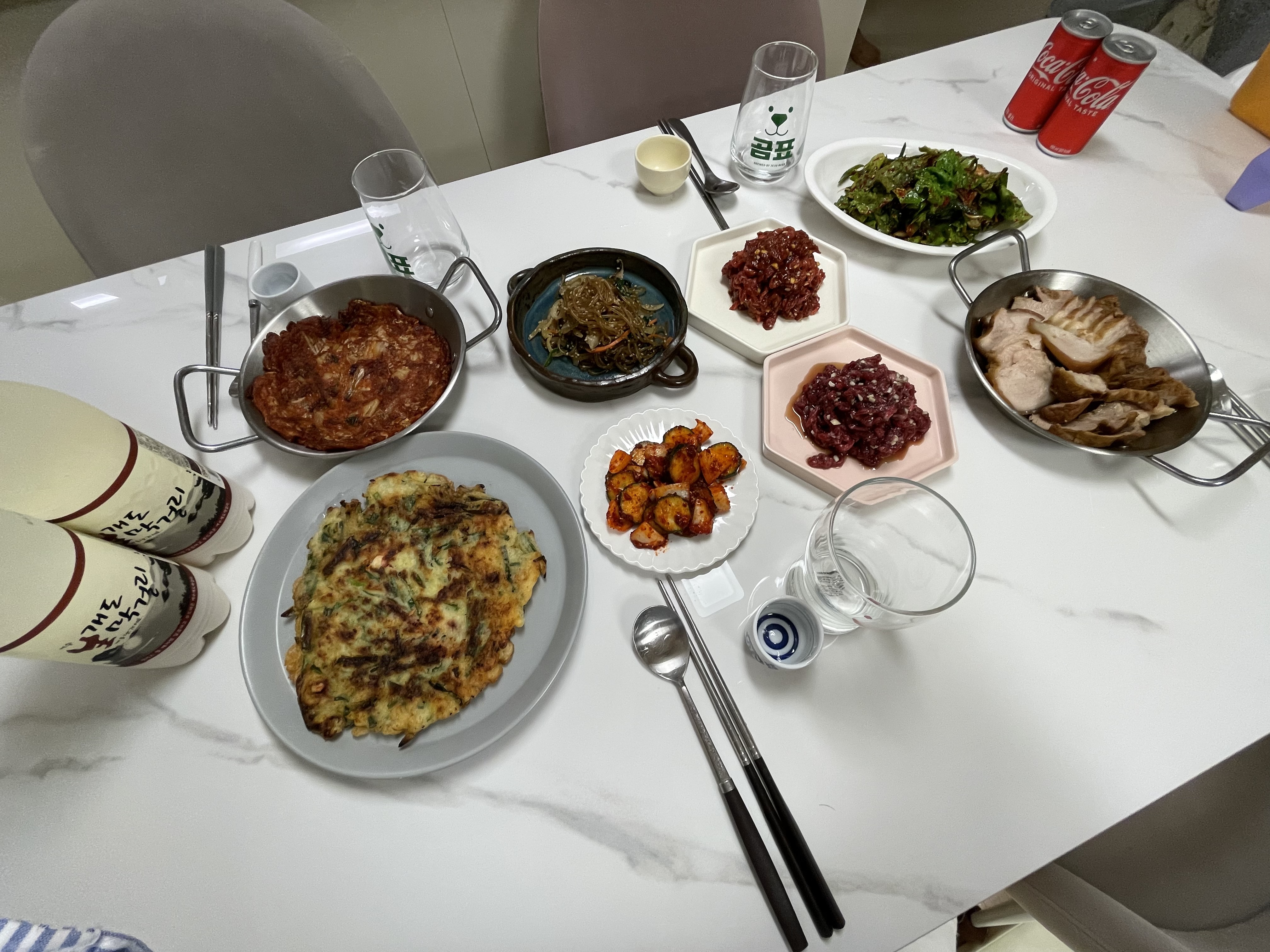 오늘은 그저 비 오는 날, 편안한 공간에서 수다 떨며 매제가 준비해준 근사한 집밥과 막걸리 한 잔, 이게 전부였어요.