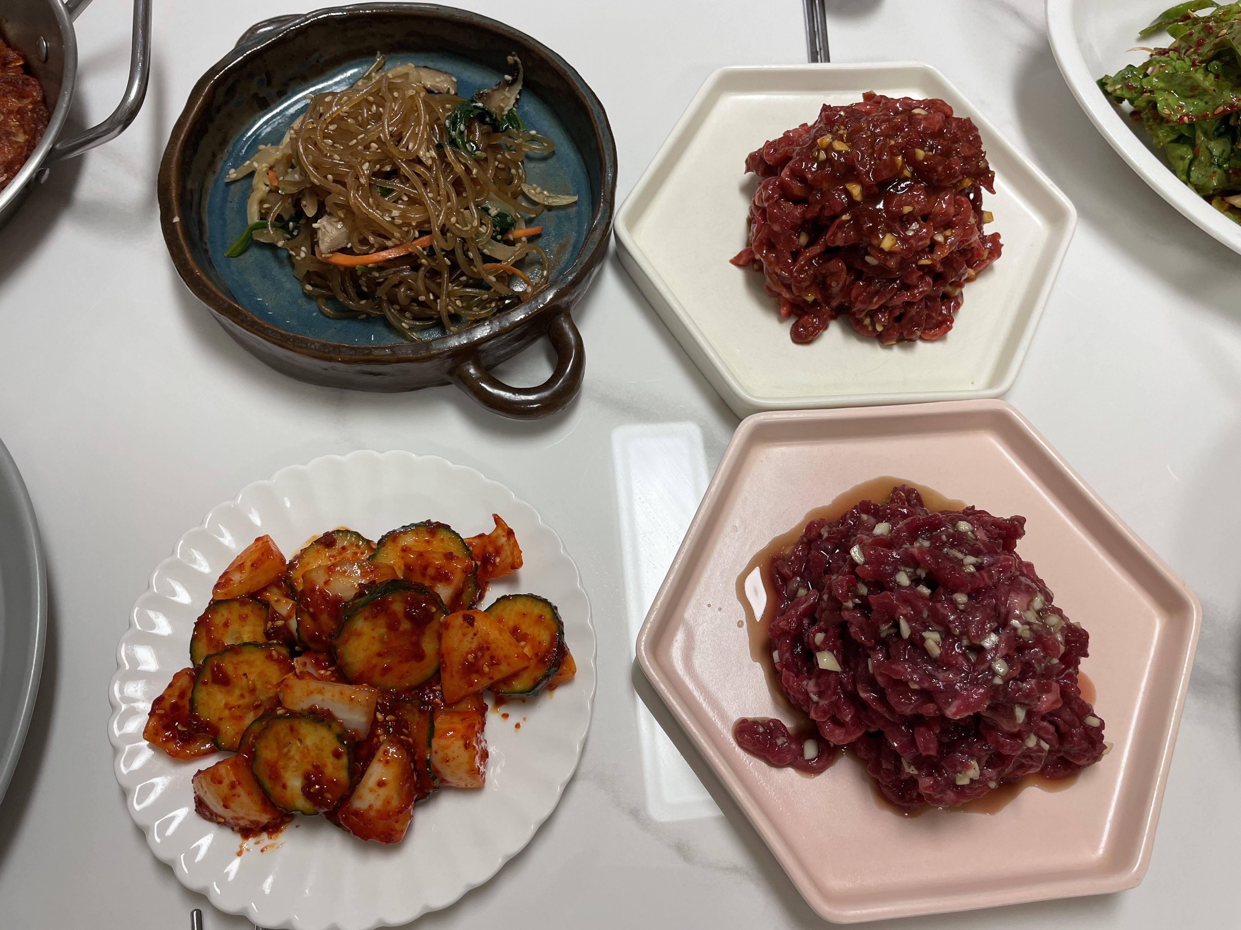 ✔️ 잡채 & 오이무침 그리고 육회 – 집밥 감성을 채워주는 밑반찬, 신선하고 고소한 육회의 정석