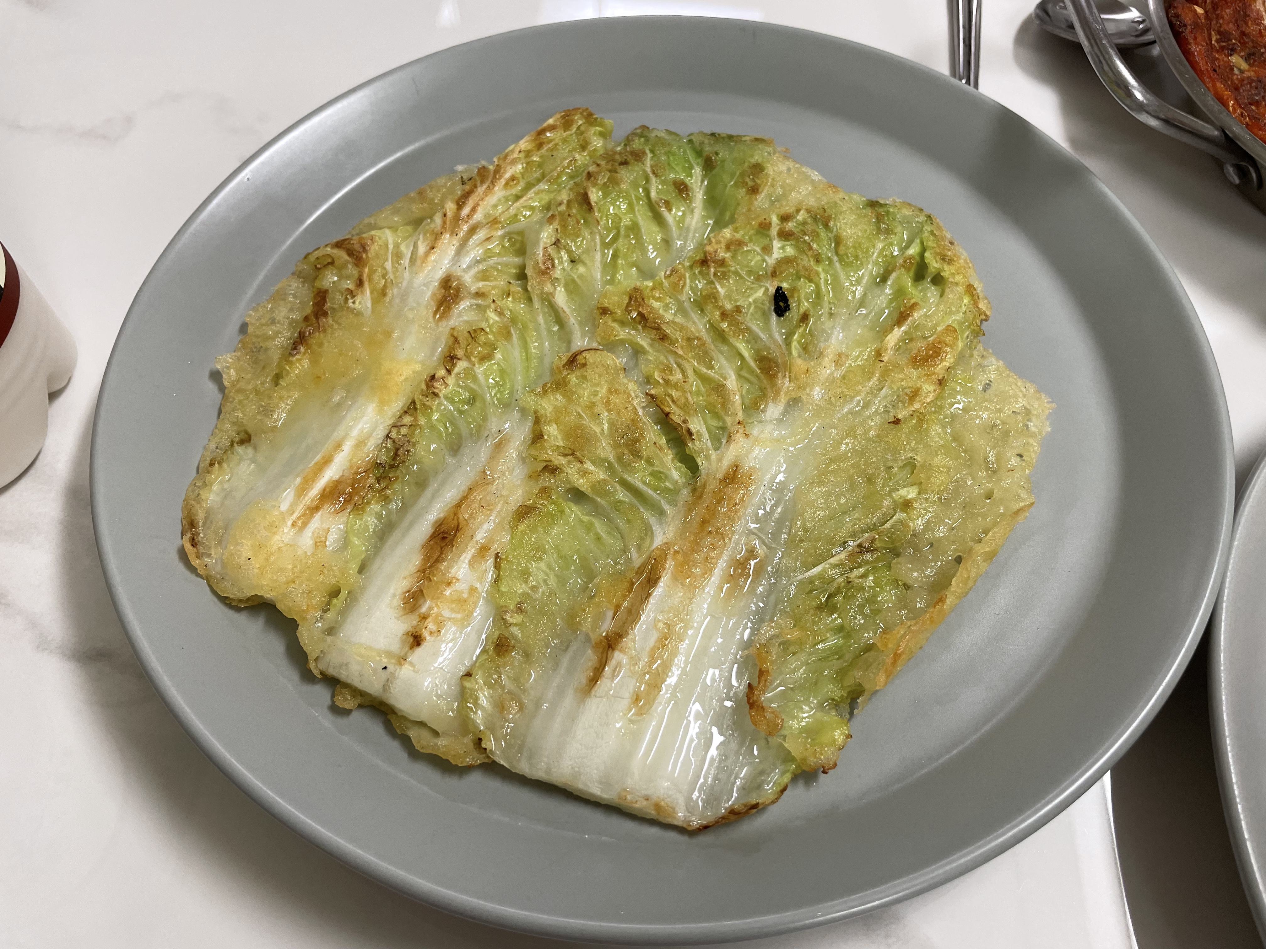 ✔️ 배추전 – 특제 소스에 찍어 먹으면 감칠맛 폭발