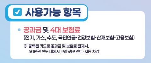 - 무엇을? → 공과금 + 4대보험료 납부에 사용 가능한 50만 원 크레딧