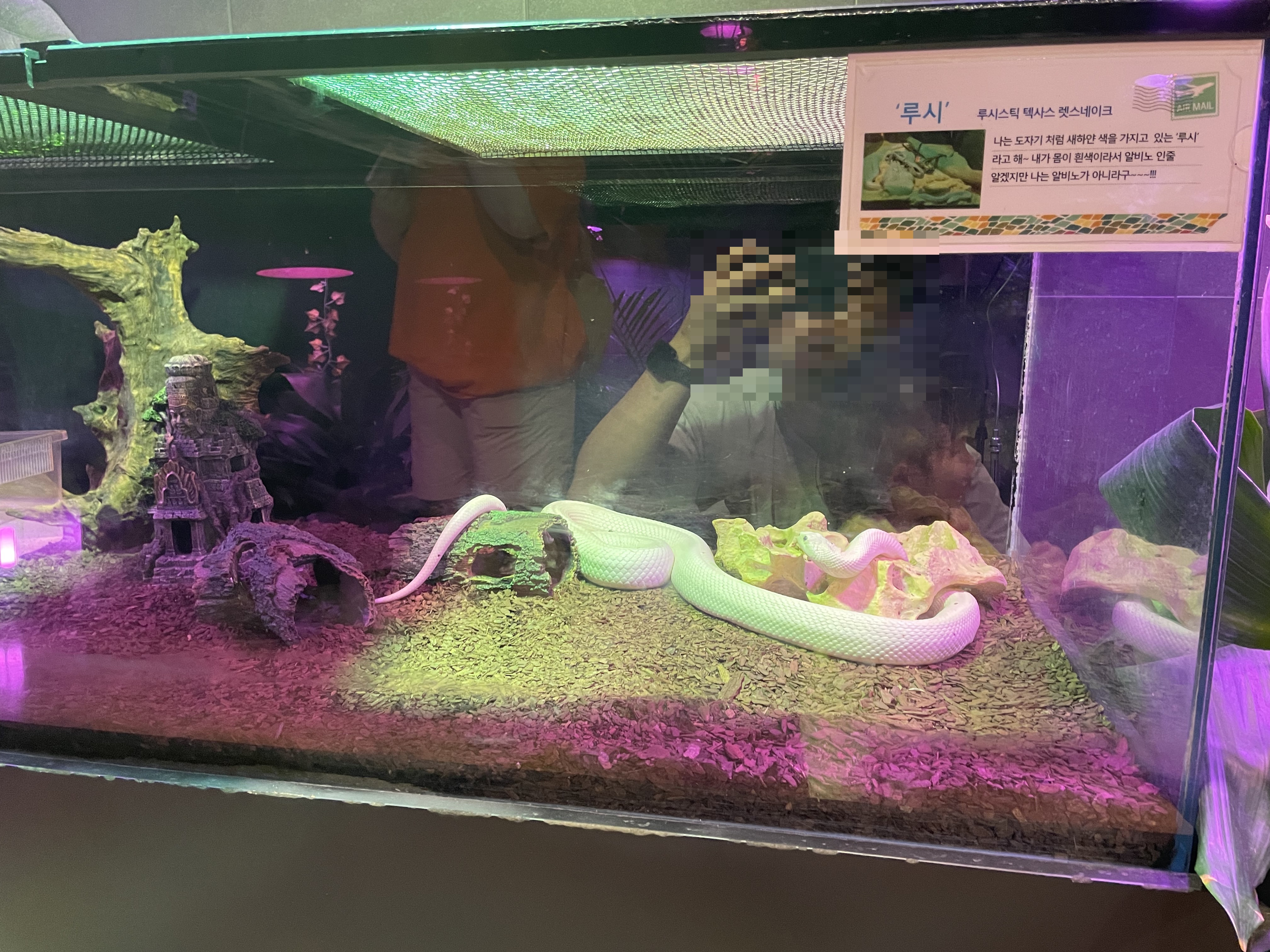 뱀과 도마뱀 같은 파충류들을 가까이서 볼 수 있었는데, 아이들이 신기한 듯 눈을 떼지 못했어요.